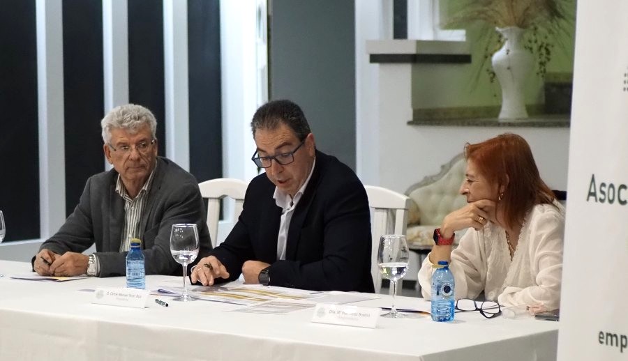 El presidente de AEVA, Carlos Terán, hizo balance muy detallado de la actividad de la asociación ante los asociados asistentes, acompañado en la mesa de otros miembros de la junta directiva, como Pilar Pérez y Severino González. También fueron aprobadas el acta anterior, las cuentas del ejercicio, se ratificaron nuevas afiliaciones y se comunicó la previsión de presupuesto para 2026.