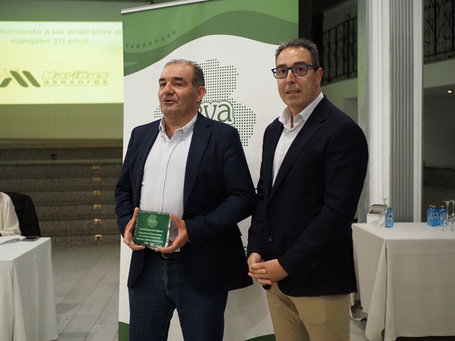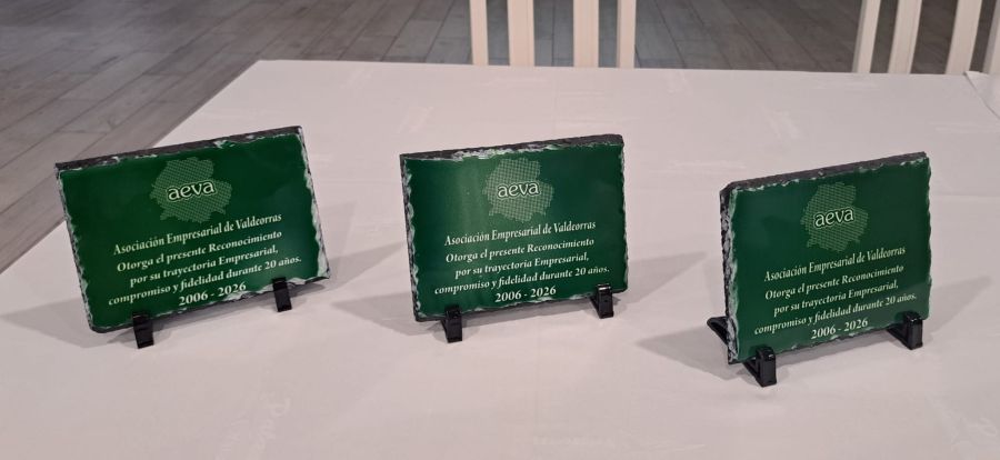 Uno de los momentos más destacados de este encuentro empresarial fue el tradicional acto de reconocimiento a las empresas que cumplen 20 años como parte de AEVA, en agradecimiento a su compromiso y contribución al desarrollo económico de la comarca de Valdeorras. En esta ocasión, fueron homenajeadas Mariñas Asesores, Maderas Manuel Núñez y Carpintería Metálica Hermaca, S.L.U (los representantes de esta última no pudieron asistir).