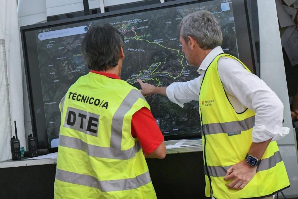 O presidente da Xunta, Alfonso Rueda, acompañado da conselleira do Medio Rural, María José Gómez, visitou hoxe o Posto de Mando Avanzado de Quiroga, en Lugo, para facer un seguimento da situación das zonas afectadas polos lumes. Nos días pasados xa estivo noutras localidades como Ourense e Chandrexa de Queixa e o 22 de agosto estará en Verín.