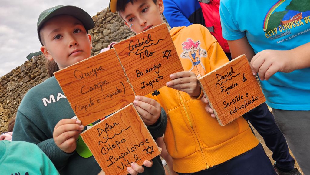 Divididos por grupos visitaron o Museo Yosso e mais o castelo, xogaron a completar poemas de Florencio con palabras relacionadas coa paisaxe, practicaron tiro con arco, descubriron a árbore do seu nacemento segundo o mito do horóscopo celta e pintaron con todo tipo de materiais orgánicos: verduras, viño e carbón. Todo iso, conducido cun xogo de pistas que tiñan que ir resolvendo para poder pasar de actividade.