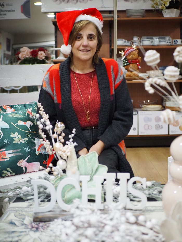 María Jesús Delgado González, el alma de D’Chus, cumple sueños en Navidad. «La decoración, todos los artículos son de última tendencia». Cita como ejemplo, las bolas para los árboles navideños, «que son de cristal, espectaculares», valora.