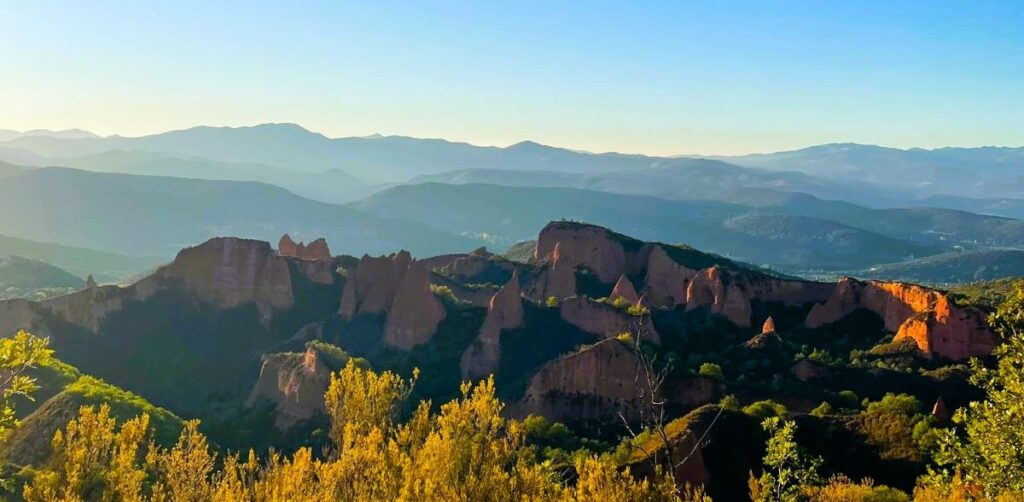 La primera etapa es Ponferrada-Puente de Domingo Flórez (León), 35 kilómetros, en los que ya se despliega su hermoso paisaje con árboles frutales, nogales, almendros y cerezos, además de viñedos, casas típicas con grandes balconadas y algún castillo, además de Las Médulas (Patrimonio de la Humanidad), la monumental explotación que realizaron los romanos para extraer el preciado oro.