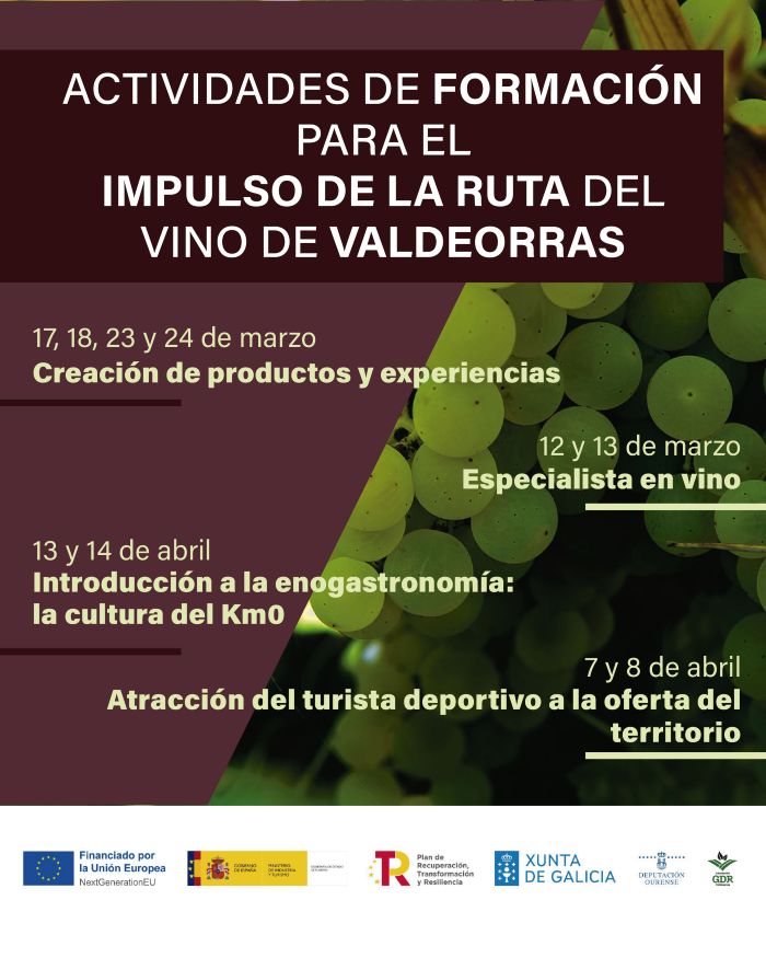 La Asociación GDR Valdeorras pone en marcha un completo programa de formación gratuita dirigido a profesionales de los sectores turístico, vitivinícola y hostelero de la comarca, así como a cualquier persona interesada en mejorar sus conocimientos en el ámbito del enoturismo.
