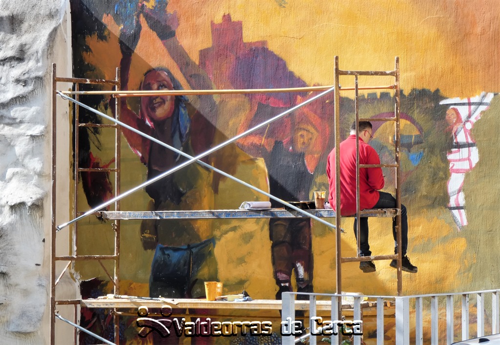 Aprovechando el próximo final del mural, de 6 metros de ancho por 8 metros de alto, el acto programado para día 20 de noviembre consistirá en la exhibición del trabajo del artista combinada con la música en directo de la banda valdeorresa “Clon Bois”, cuyo repertorio