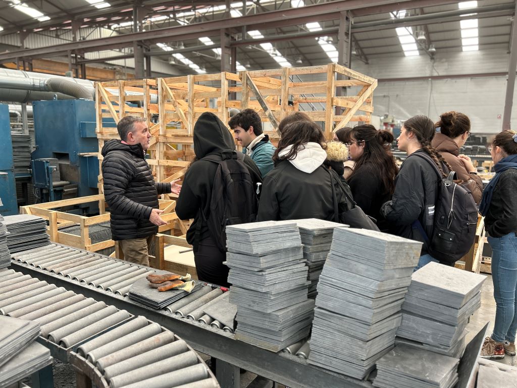 Treinta alumnos acompañados de profesores de la Escuela Técnica Superior de Arquitectura de A Coruña (ETSA) realizaron una visita a una cantera de extracción de pizarra y, posteriormente, a su nave de elaboración. El objetivo, vuelve a ser, como en anteriores visitas programadas por el Clúster, que los futuros arquitectos conozcan de primera mano este material constructivo, desde el inicio hasta el final de su proceso productivo, y mostrar las posibilidades que ofrece en la construcción de edificaciones.