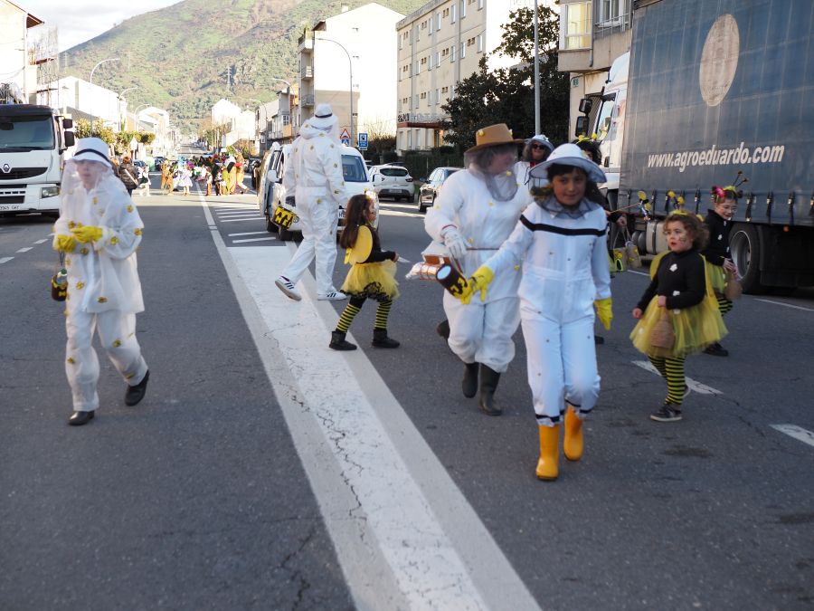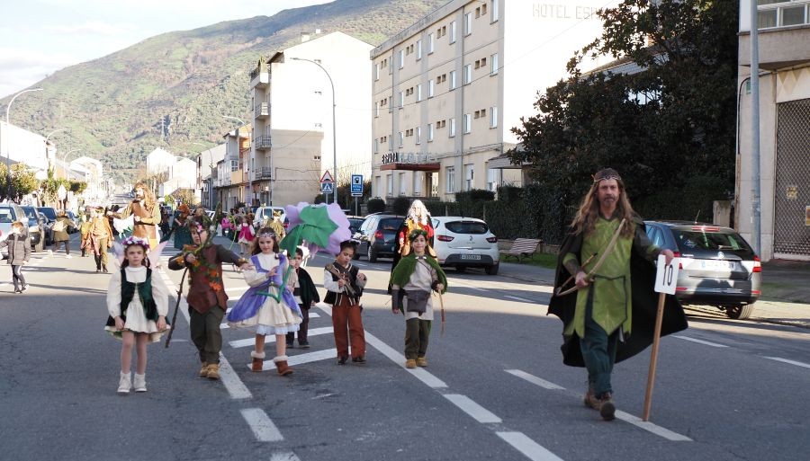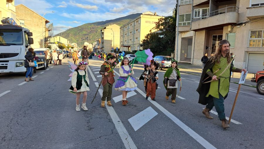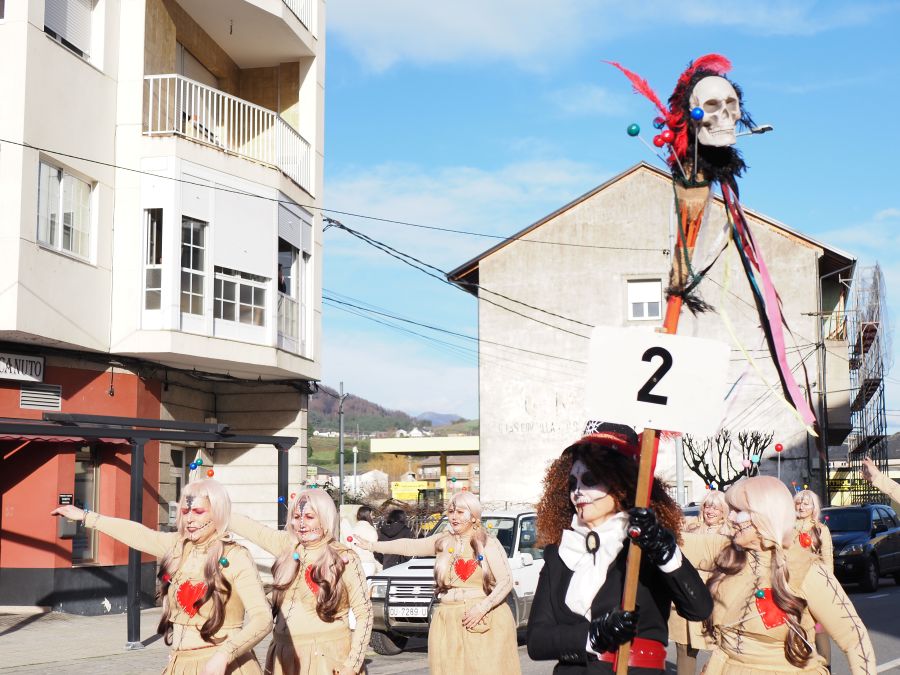 Tal y como manda la tradición, no faltaron Os Fargalleiros, el personaje de Entroido propio de la localidad, pero también la comparsa vecina de San Clodio-Quiroga, que volvió a sorprender con sus disfraces.