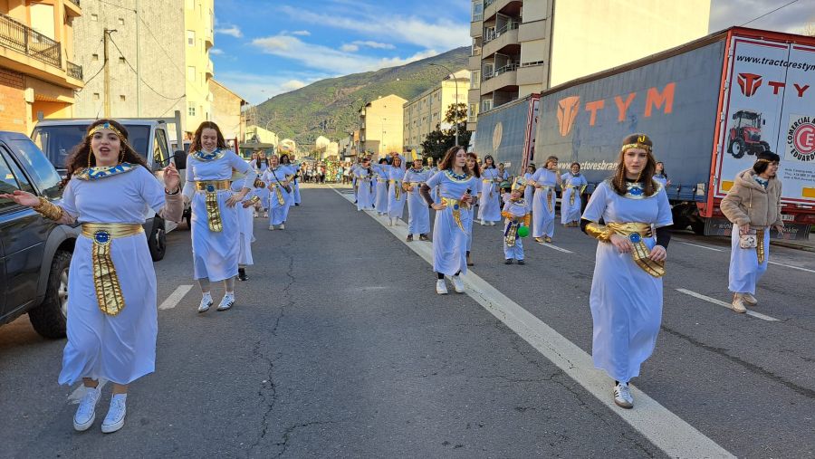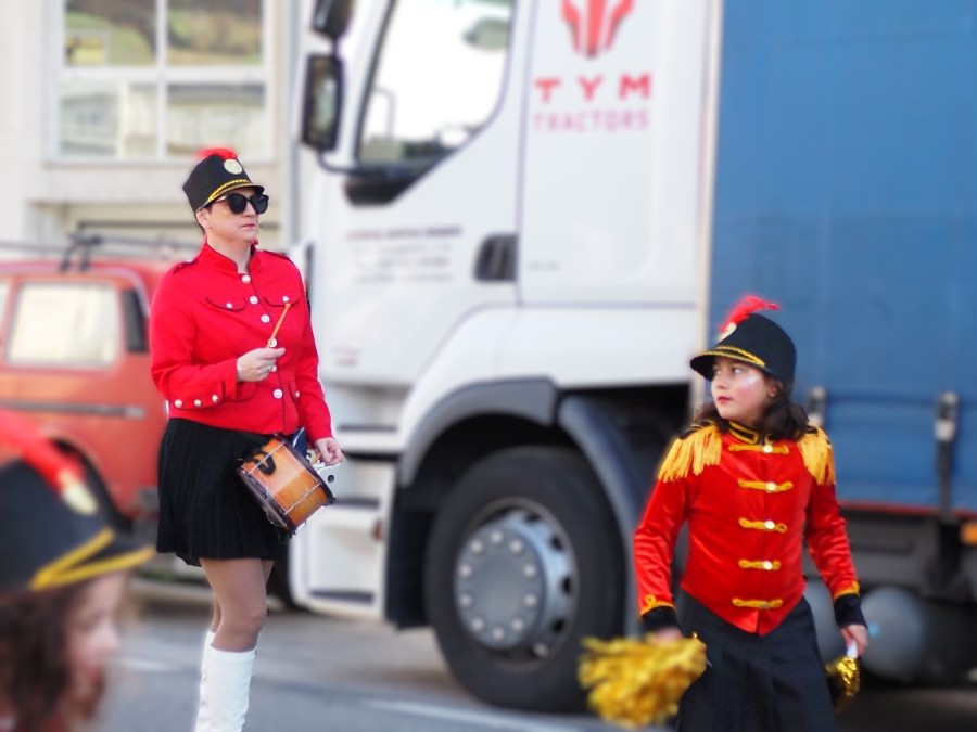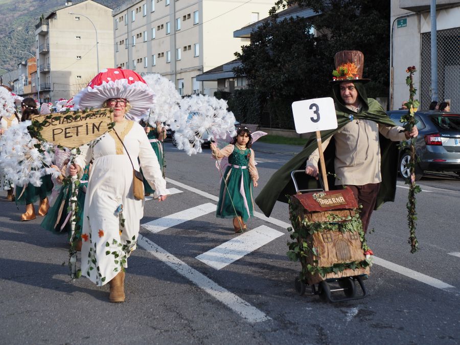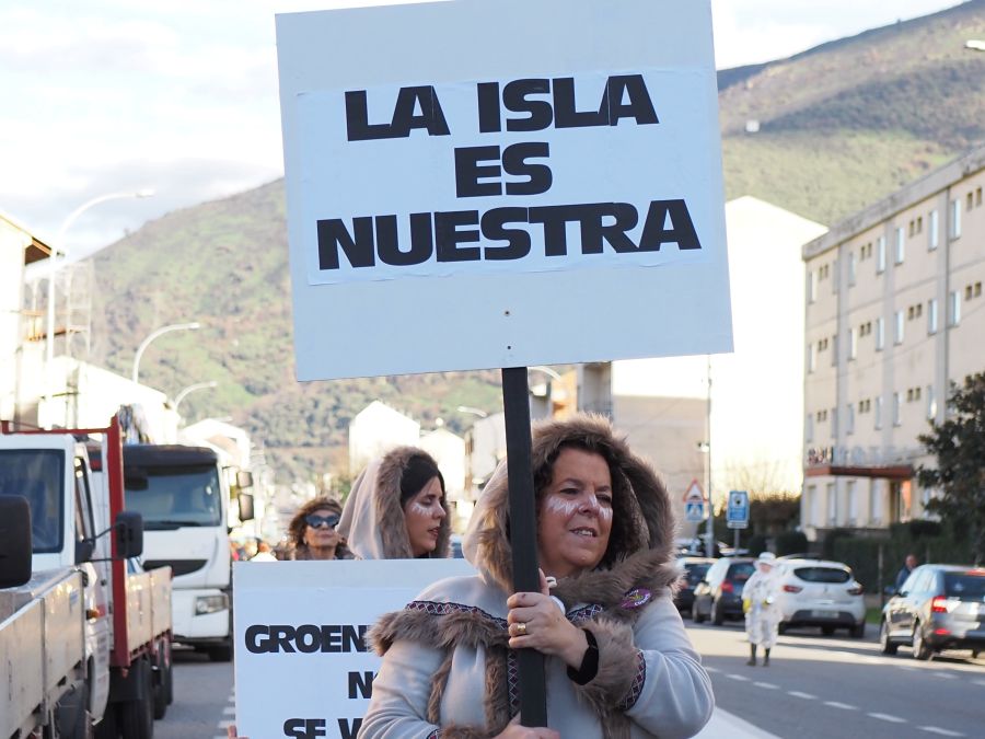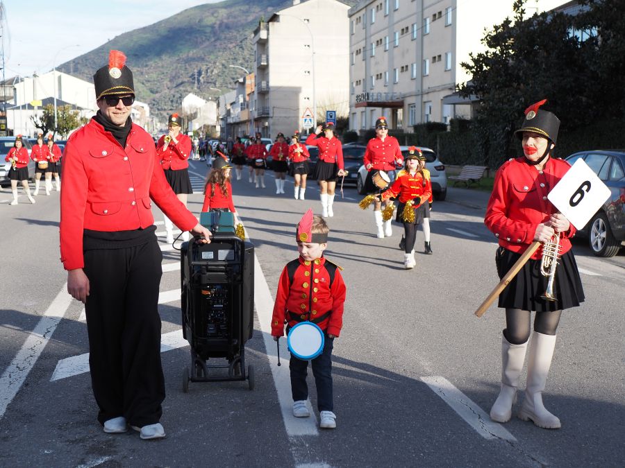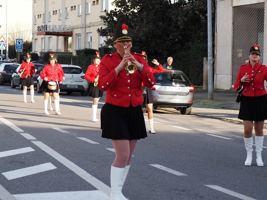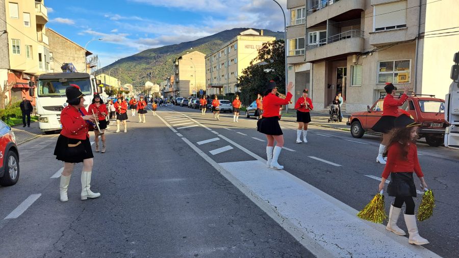 Majorettes de A Rúa interpretaron su música y baile, mientras que la comparsa de Petín encandiló con su dulce indumentaria, al tiempo que una comparsa de A Rúa escenificó la actualidad, concretamente el conflicto de Groenlandia, y no faltaron las «muñecas vudjú».