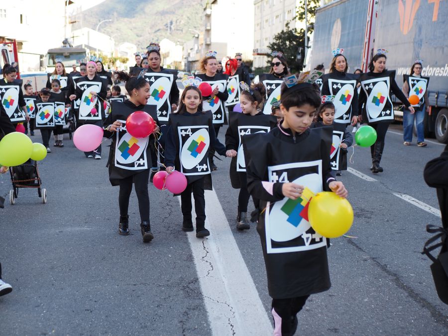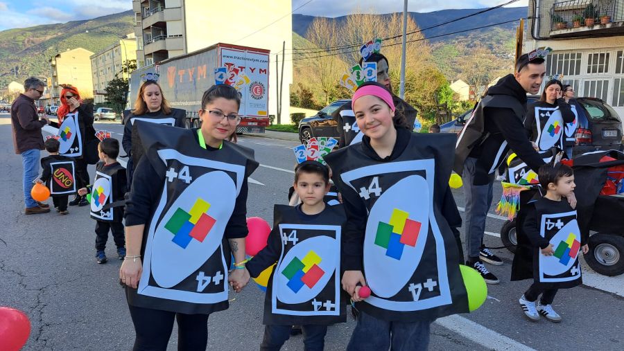 El desfile de Entroido en A Rúa llenó de disfraces, colorido, imaginación, animación y creatividad las calles de la localidad. Las personas integrantes dedicaron tiempo y ganas a la confección de vistosos atuendos y coreografías para dar vida a esta fiesta única.