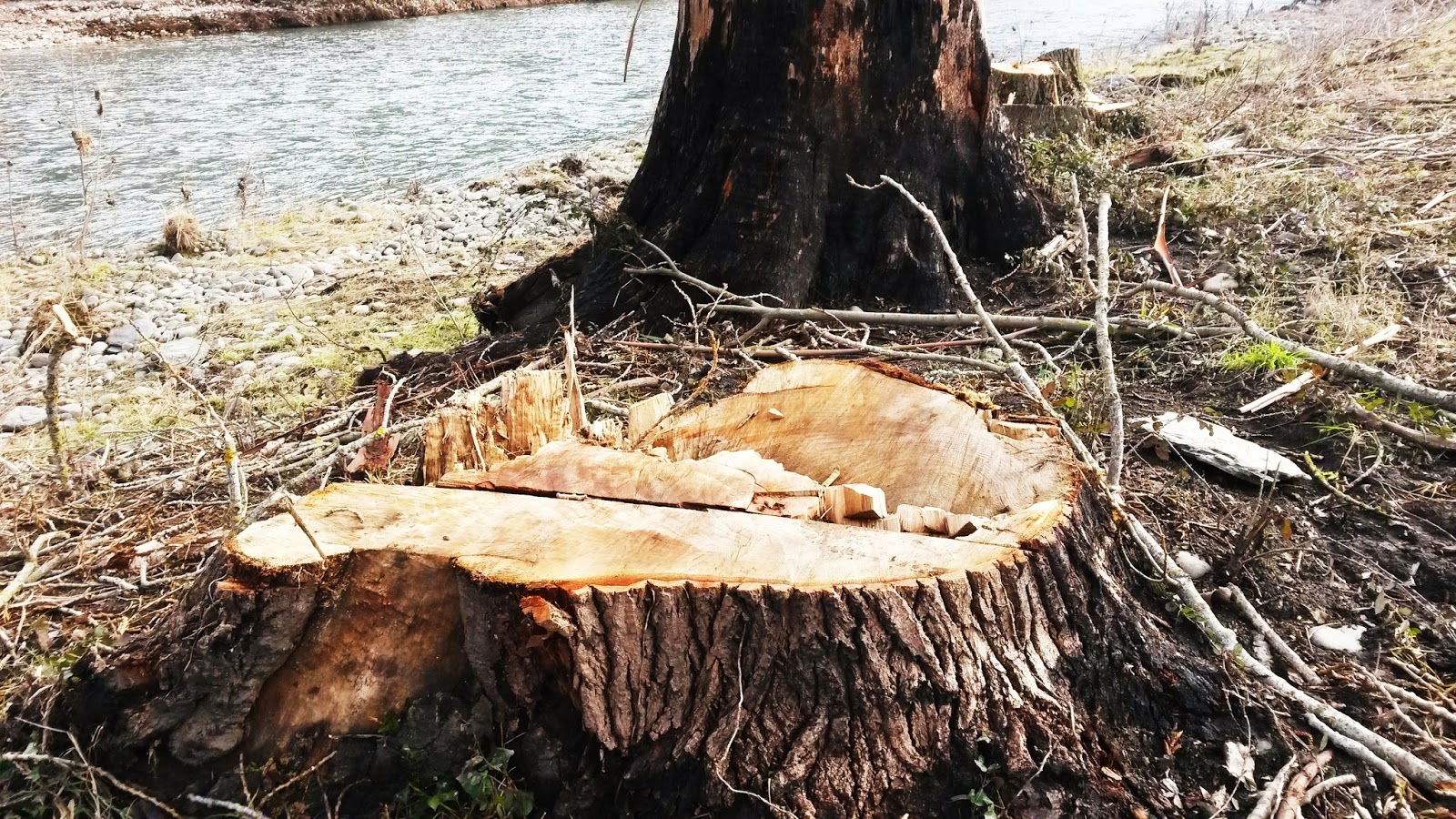 La «tala curativa» que justificó el alcalde, Avelino García (PP), no convence a nadie, entre otras cosas porque la base de los troncos revela que la mayor parte de los árboles talados estaban sanos y porque han talado los árboles más grandes.