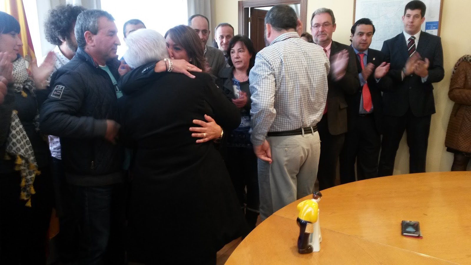 Abrazo a la madre de José Ferreira por una trabajadora del Concello