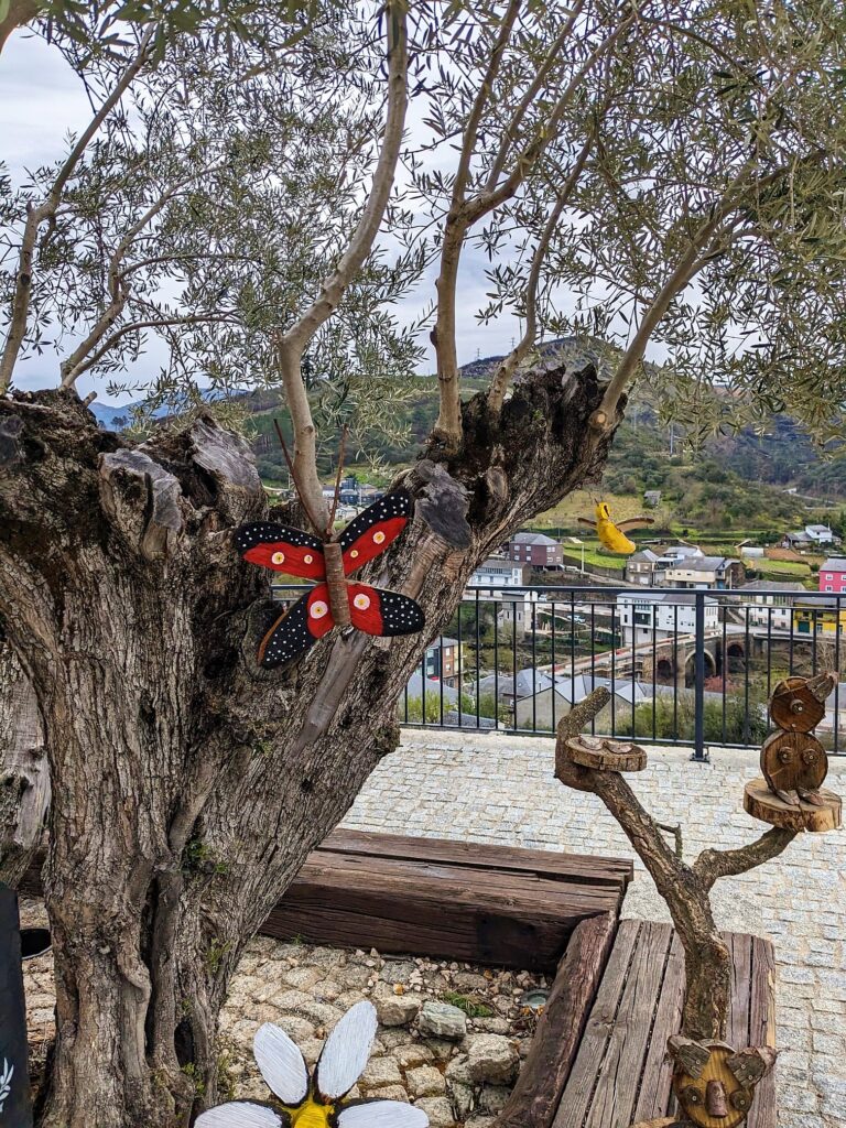 El Concello colocó figuras artesanales en madera en sus jardines como flores, insectos, mariposas, garzas y otros elementos propios de la estación