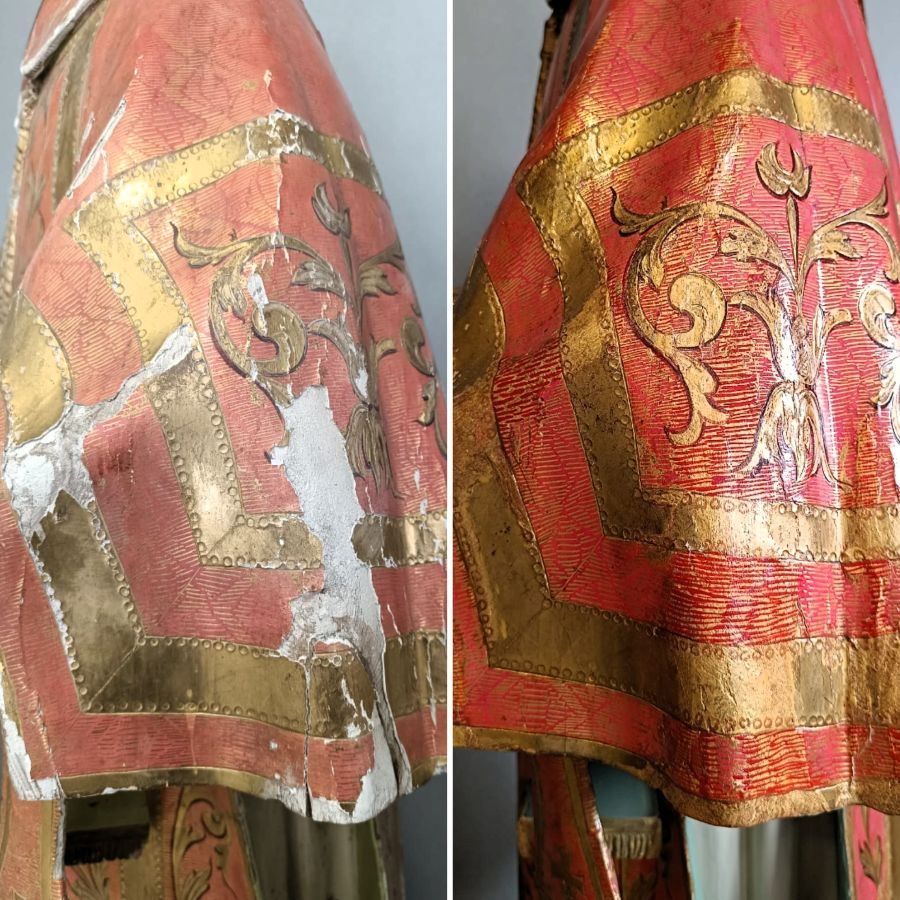 La imagen ha sido restaurada por el taller especializado RestaurArt, devolviéndole su policromía original y su dignidad artística, «permitiendo así que vuelva a procesionar con seguridad y respeto», expone Daniel Pérez Quintela.