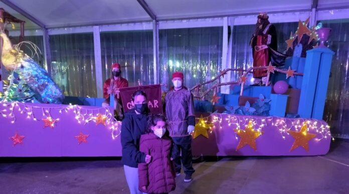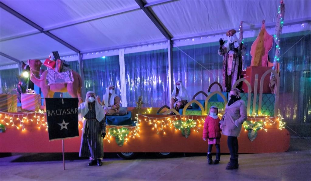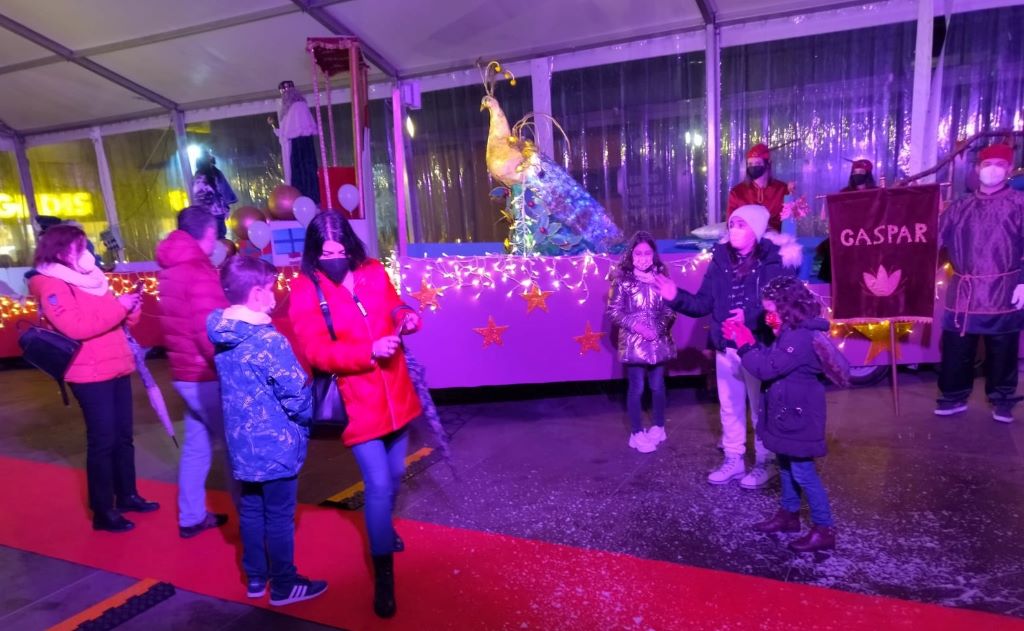Tal y como estaba previsto la comitiva real ocupó una carpa instalada frente al edificio multiusos a fin de esquivar el día de lluvia. Fue una cabalgata estática marcada por los tiempos de covid.