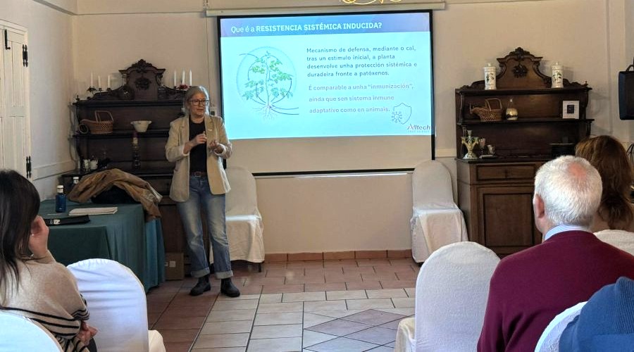 El tercer bloque lo protagonizó Marta Simón, ingeniera técnica agrícola de Alltech Crop Science,con una ponencia centrada en la resistencia inducida en viñedo y en la presentación de resultados. Simón explicó que el objetivo de estas estrategias es acompañar a la planta para que active y refuerce sus propios mecanismos de defensa, mejorando su capacidad de respuesta ante diferentes estreses y favoreciendo un comportamiento más estable del viñedo.