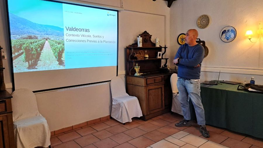 El segundo bloque corrió a cargo de Jesús Sánchez, técnico especialista en viñedo de DELAGRO, quien abordó prácticas agronómicas clave en la viña, poniendo el foco en nuevas plantaciones y en la recuperación de viñedos de legado. Sánchez subrayó que «la longevidad del viñedo, y con ella la estabilidad de la calidad, se construye con decisiones técnicas tomadas a tiempo: desde el planteamiento inicial de la plantación y su implantación, hasta el manejo posterior y la recuperación de parcelas con valor histórico y productivo».