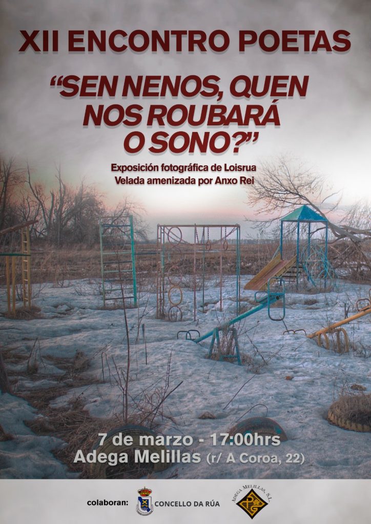 El próximo sábado, 7 de marzo, a partir de las 17,00 horas, se celebra el «XII Encontro de Poetas», con la colaboración del Concello de A Rúa, en la Adega Melillas de A Rúa. Participaran 14 poetas y 9 jóvenes del Instituto Cosme López de A Rúa.