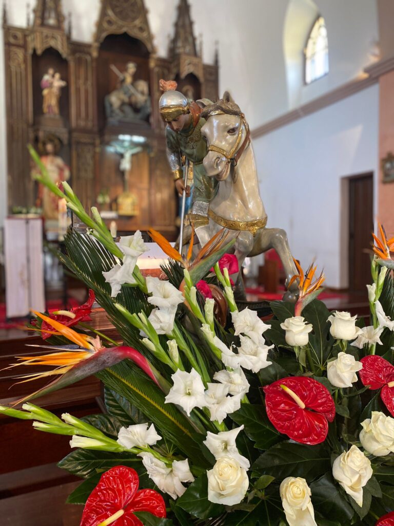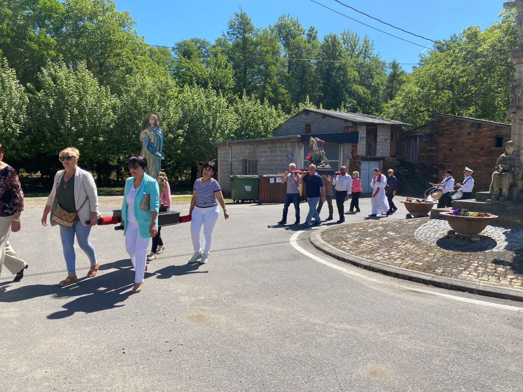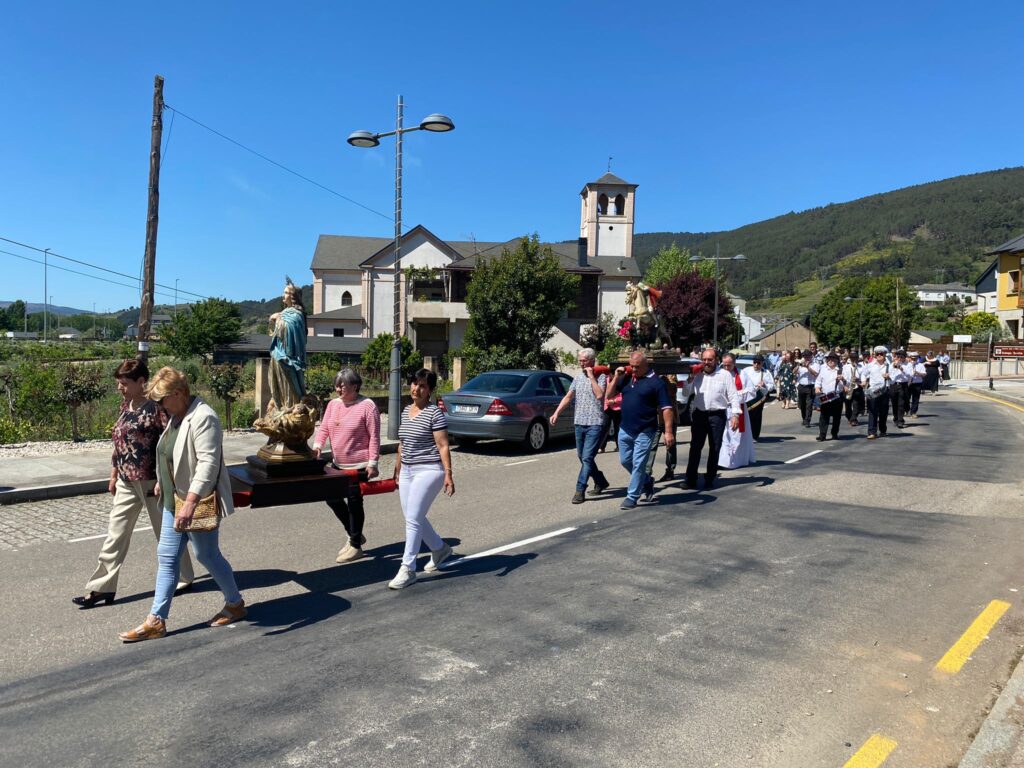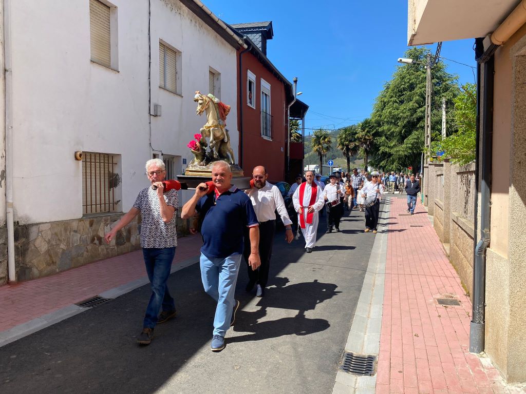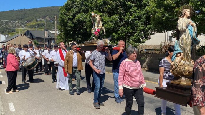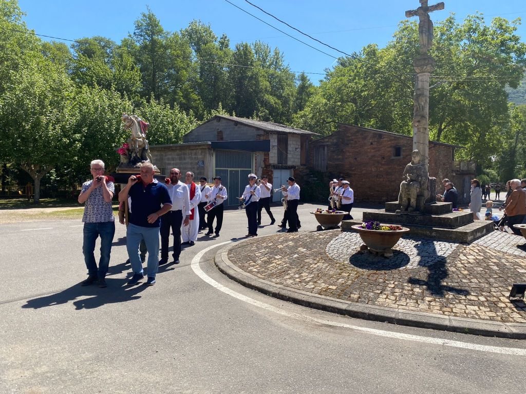 San Xurxo salió en procesión esta mañana en Vilamartín, acompañado de otras imágenes religiosas, y volverá a salir el día grande, el martes 23 de abril. En esta jornada dominical hubo mercadillo, música y a partir de las 19,30, baile con el Grupo JB Son.