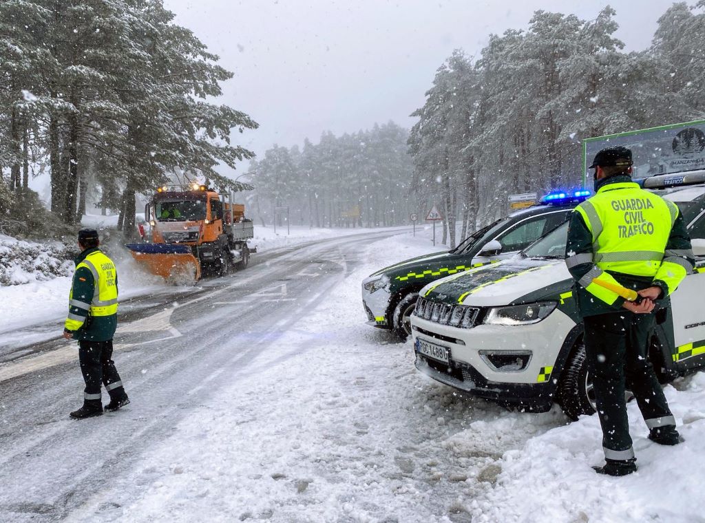 La Guardia Civil de Tráfico y las máquinas quitanieves ayudaron a controlar el paso de vehículos por los nevados accesos hacia la estación de montaña de Manzaneda.